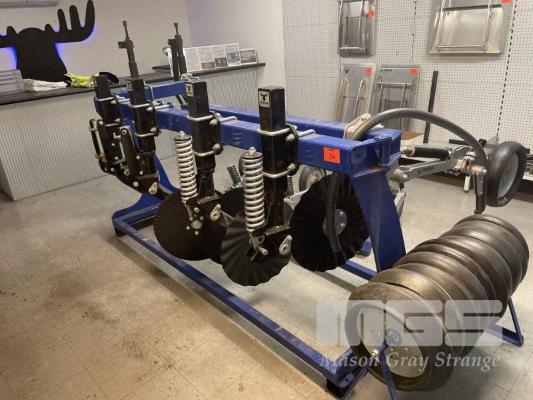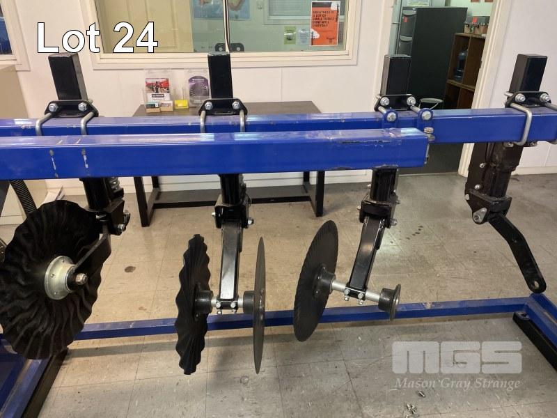 FIELD DAY IMPLEMENT STAND INCLUDING 2 FOLD OUT ARMS & 7 x DISC ATTACHMENTS & WHEEL SELECTION ON STAND