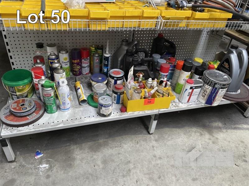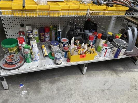 ASSORTED CUTTING & GRINDING WHEELS, LUBRICANTS, PAINTS, AEROSOLS, ETC