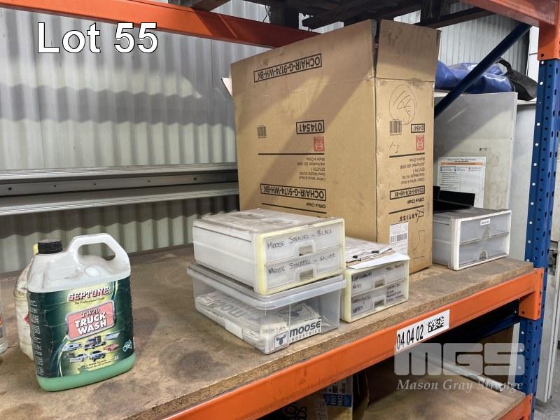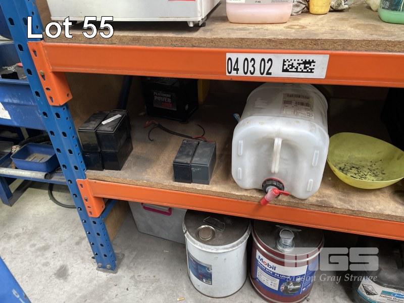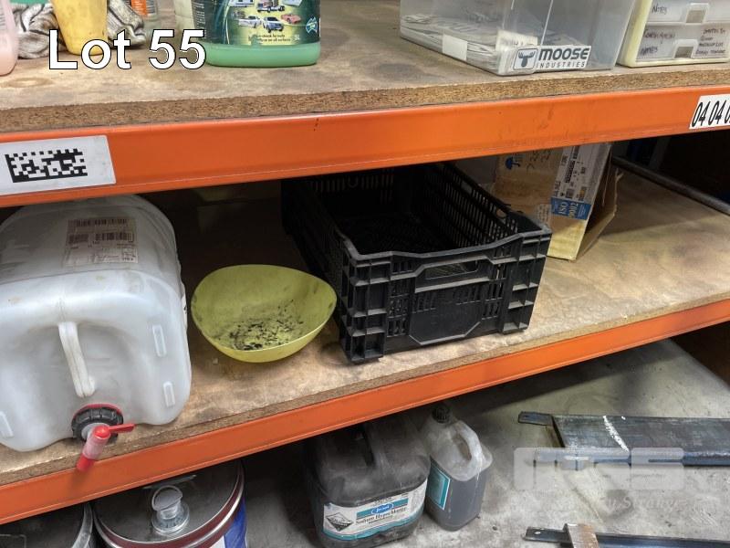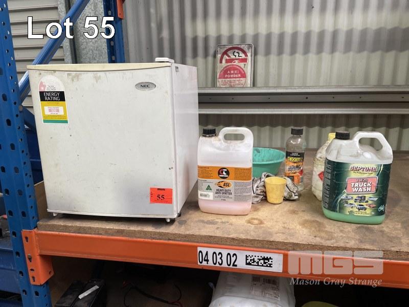 CONTENTS RACK INCLUDING SMALL BAR FRIDGE, ANTI SPATTER, TRUCK WASH, OILS, (NOT INCLUDING RACK)