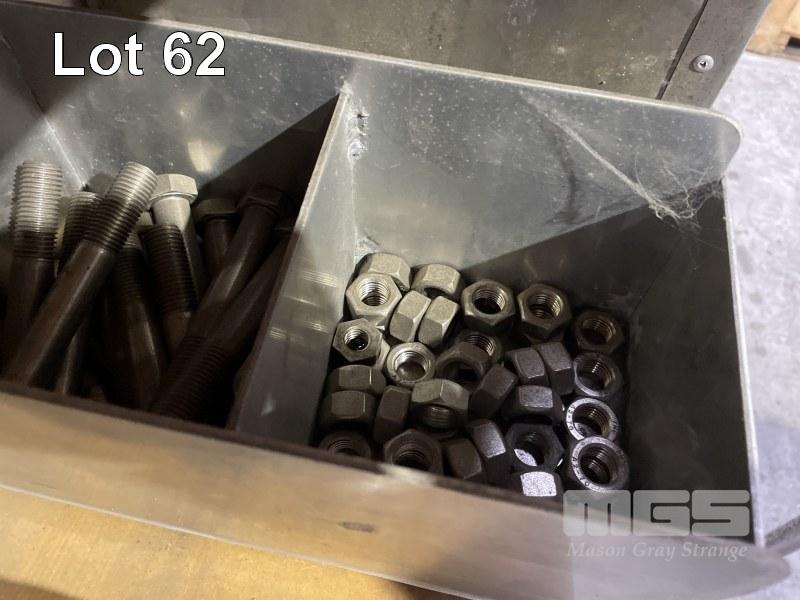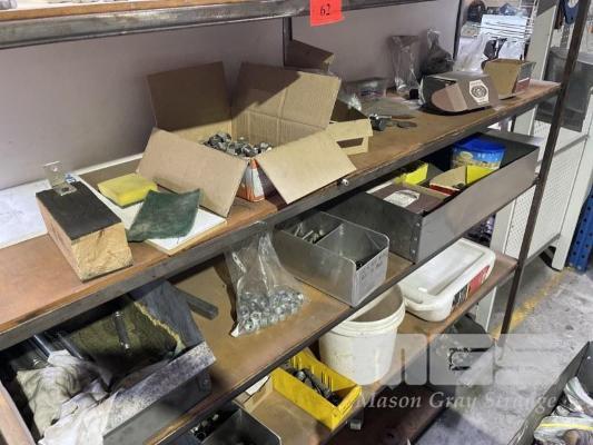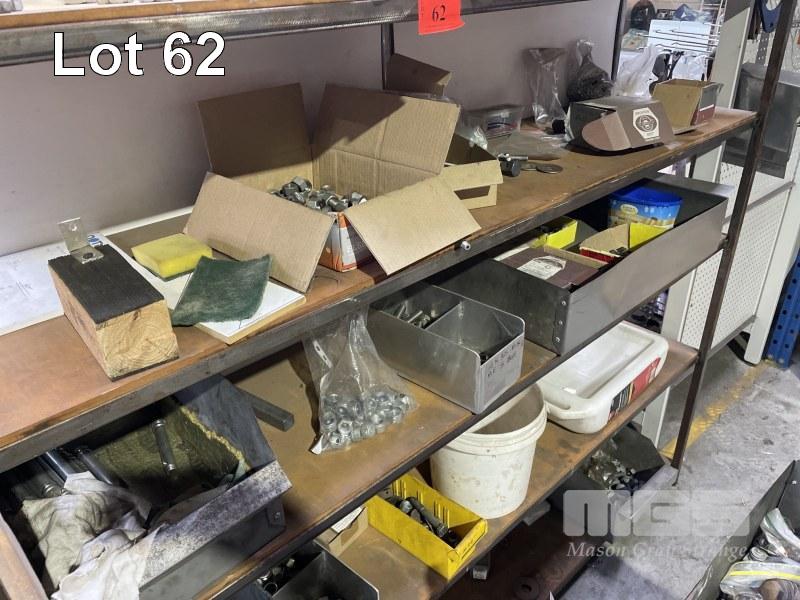 CONTENTS OF SHELVES INCLUDING NYLOC NUTS, PINS, FASTENERS, STAINLESS STEEL BOLTS, ETC, (NOT INCLUDING RACK)