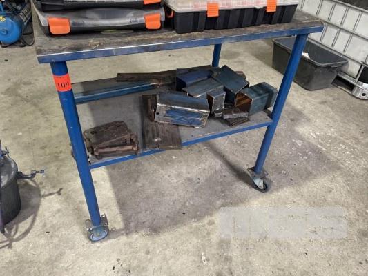 MOBILE TOOL BENCH, TUBE STEEL, TIMBER TOP, 110 x 90cm