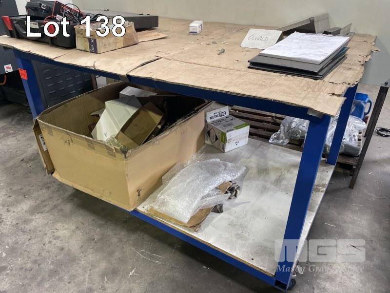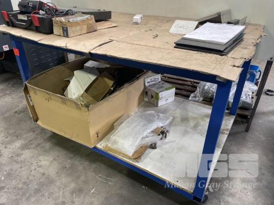 TUBE STEEL BENCH, 180 x 110cm, WITH PLY BOARD TOP, MOBILE