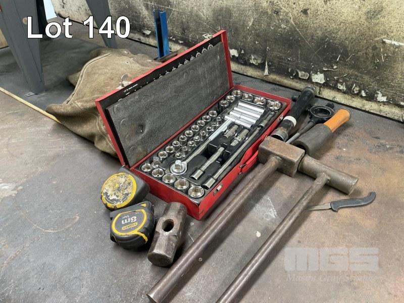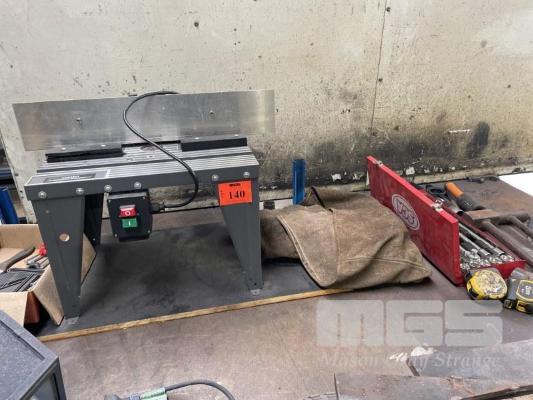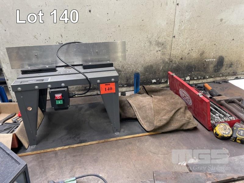 ROUTER TABLE, SCA 1/2" SOCKET SET, LIGHTS, OFFCUT STEEL & COMPONENTS (CONTENTS BENCH ONLY)