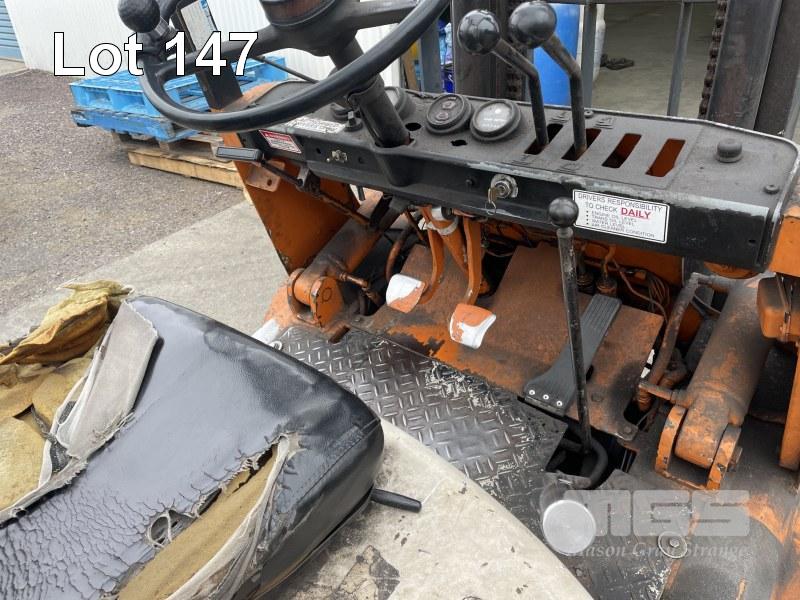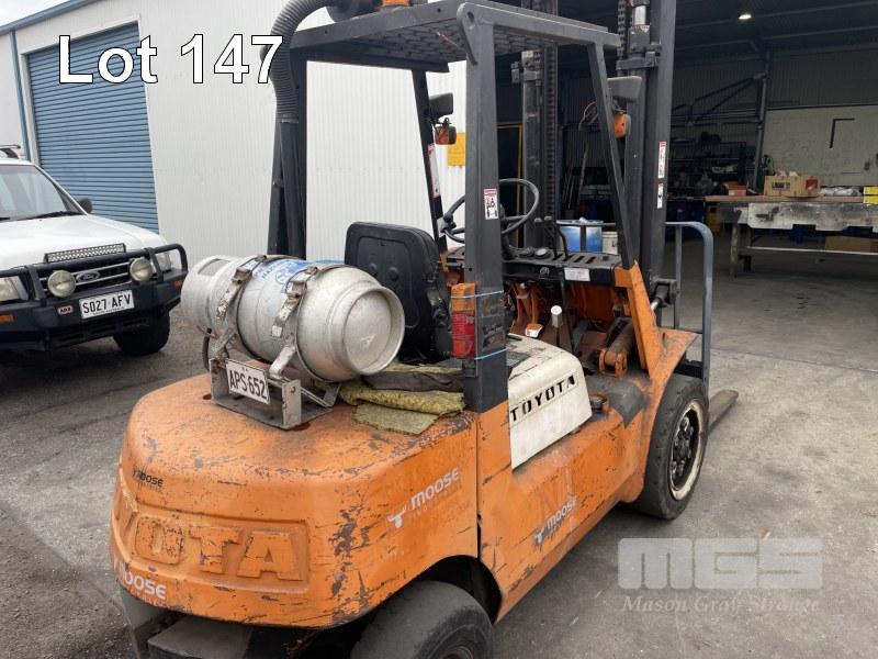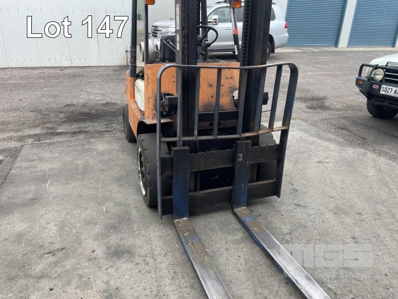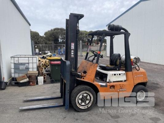 FORKLIFT, TOYOTA MOD: 2FG-3.5 HOURS: 4025 INDICATED LPG, SOLID TYRE, MANUAL 2900MM MAST, SEE THRU, 2 STAGE BRAKES & RAMS REBUILT (STEERING GETS TIGHT)