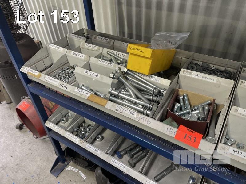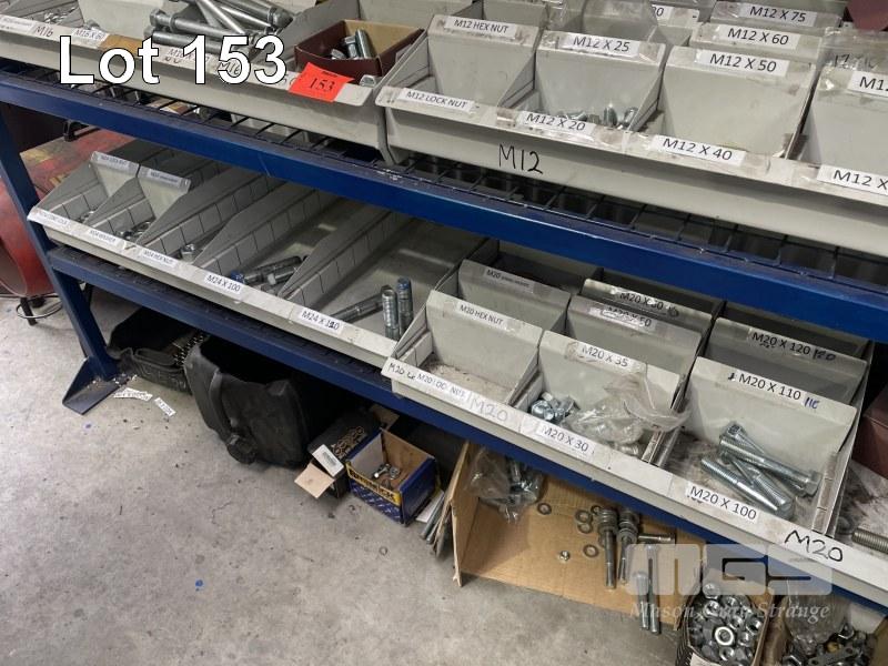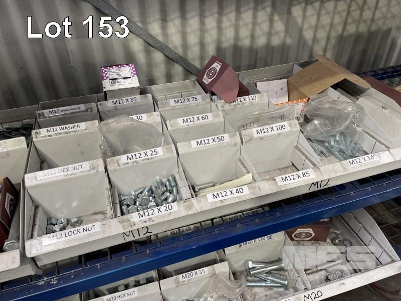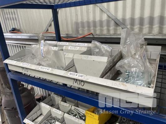 5 x STEEL COMPONENT TRAYS WITH HUGE QUANTITY ZINC FASTENERS, METRIC, M10-M20