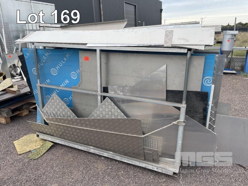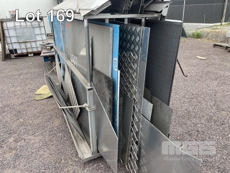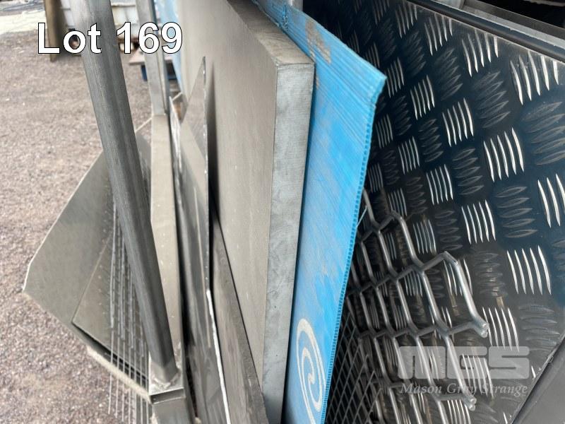 4 BAY PLATE RACK & ALLOY CHECKER PLATE, MESH, 20mm PLATE, OFFCUTS & 1 x STEEL PLATE