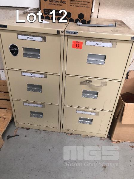 2 x CREAM STEEL 3 DRAWER FILING CABINETS