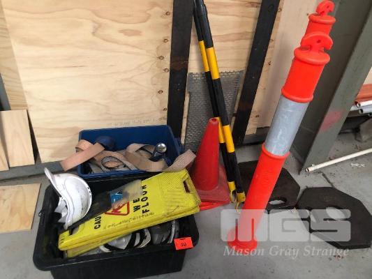 ASSORTED SAFETY EQUIPMENT INC CONES, BOLLARDS, BARRIER,SHATS, FLOOR SIGNS & STRAPS