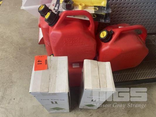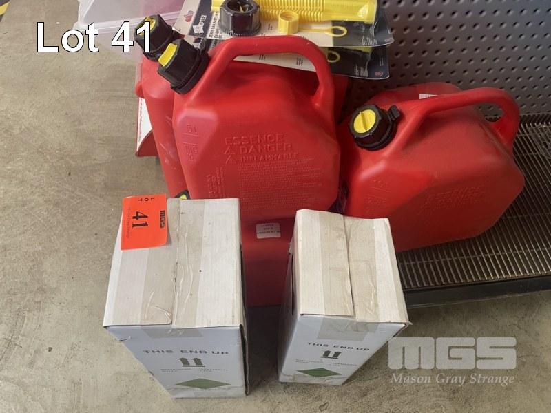 2 x FIRE EXTINGUISHERS, 2.5 & 2kg & 4 x PVC JERRRY CANS