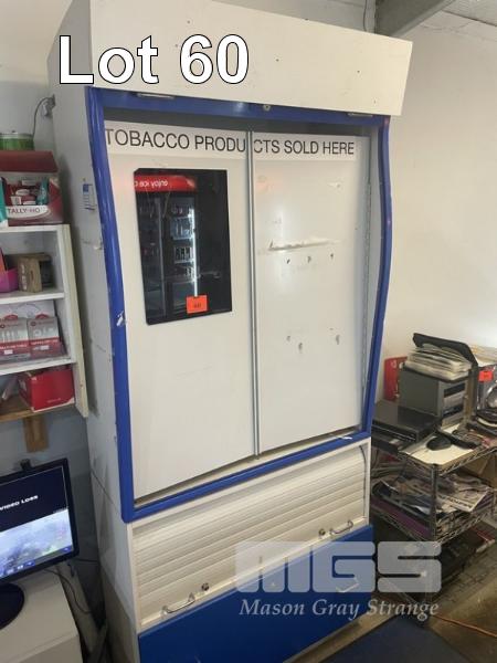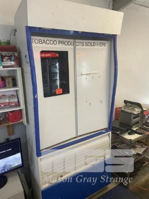 LOCKABLE TOBACCO CUPBOARD WITH ROLLER SHUTTERS & STORAGE DRAWER