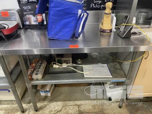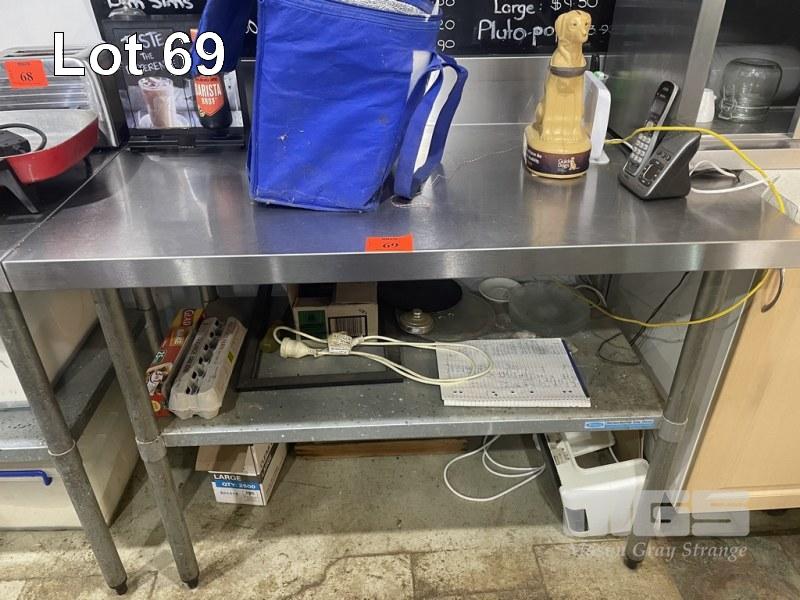 STAINLESS STEEL PREP BENCH, 120 x 70cm, 2 TIER WITH SPLASHBACK