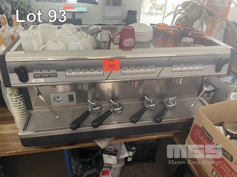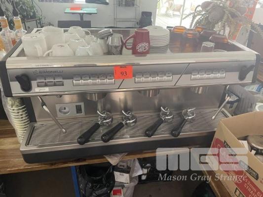 COFFEE MACHINE, NUOVA SIMONELLI MOD: APPIA-V 3 GROUP, TWIN STEAMERS WITH GROUNDS BIN & STAINLESS STEEL JUGS