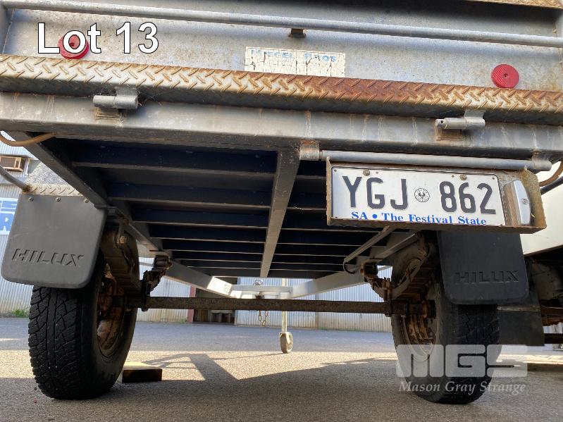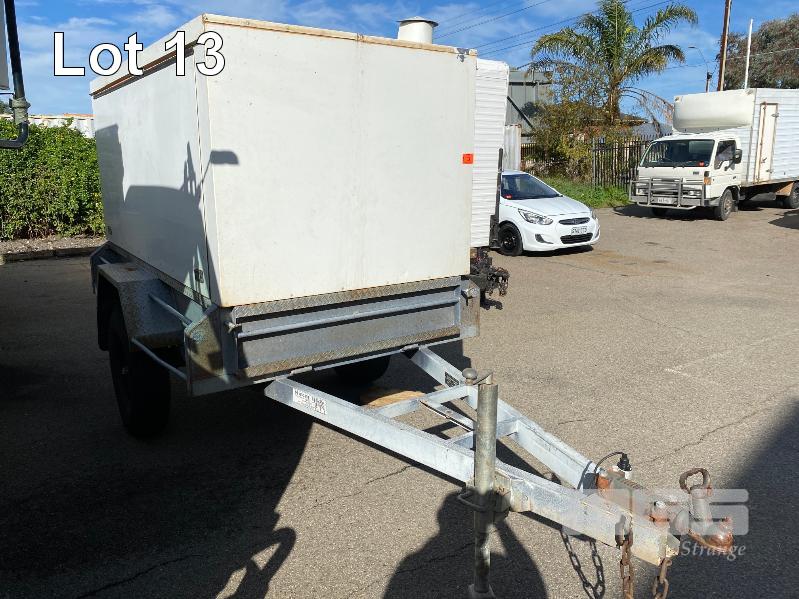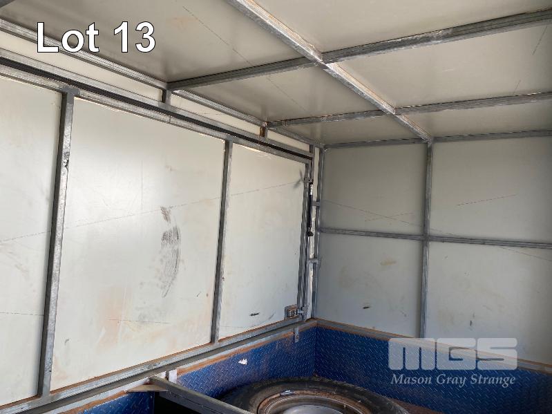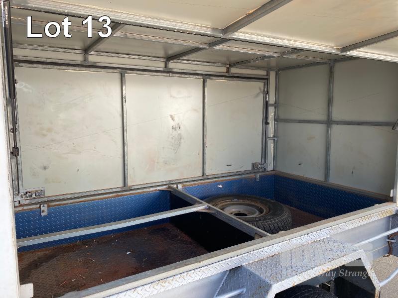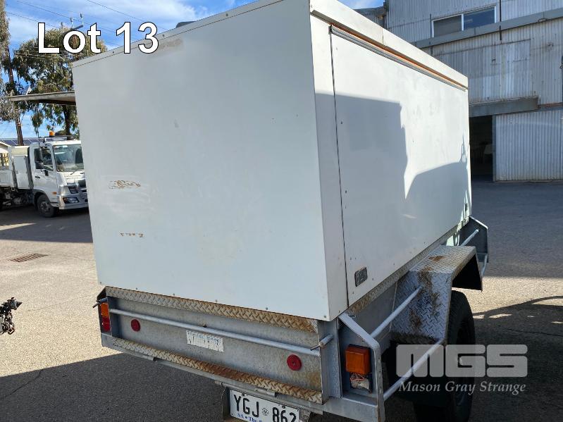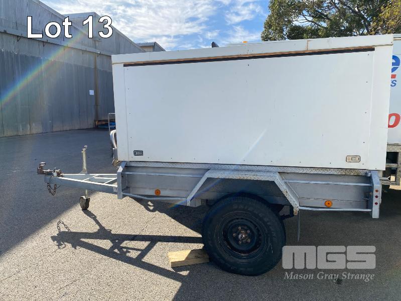 2006 MIEGEL BROS 8x4' SINGLE AXLE ALL TERRAIN ENCLOSED TRAILER REG: YGJ 862 (SA) VIN / CHASSIS: 6T9T2000S6225E006 2400 x 1200mm GTM: 360kg ENCLOSURE HEIGHT: 1400mm FROM TRAILER BASE BALL HITCH, JOCKEY WHEEL FITTED WITH 2 x GAS LIFT HINGED DOORS BOTH SIDES, SPARE WHEEL TYRE SIZE: 7.50R16 BLUE & WHITE (WITH PAPERS) 8.80% PREMIUM NO GST