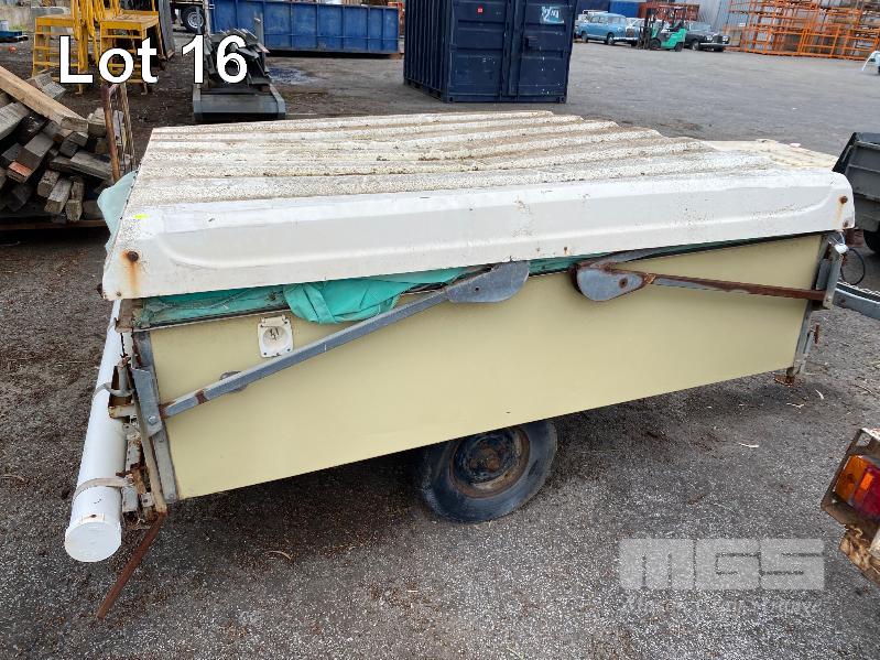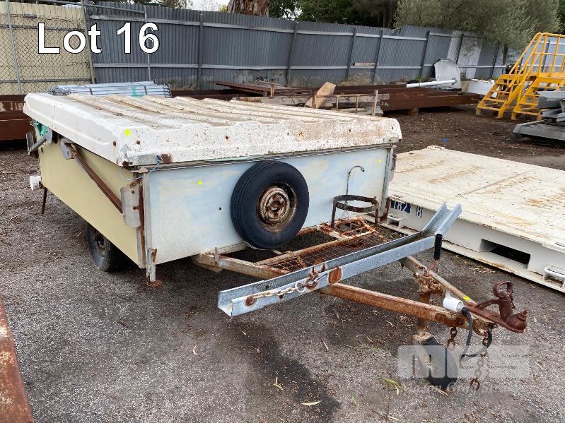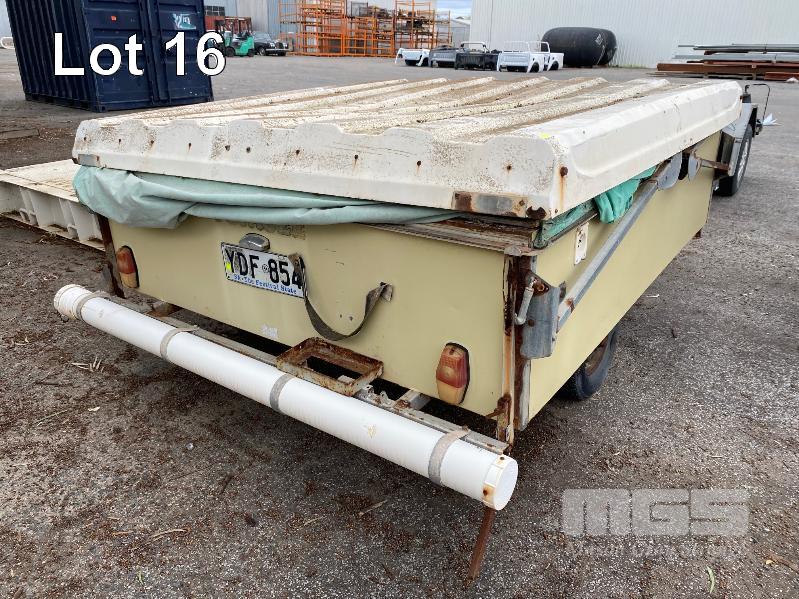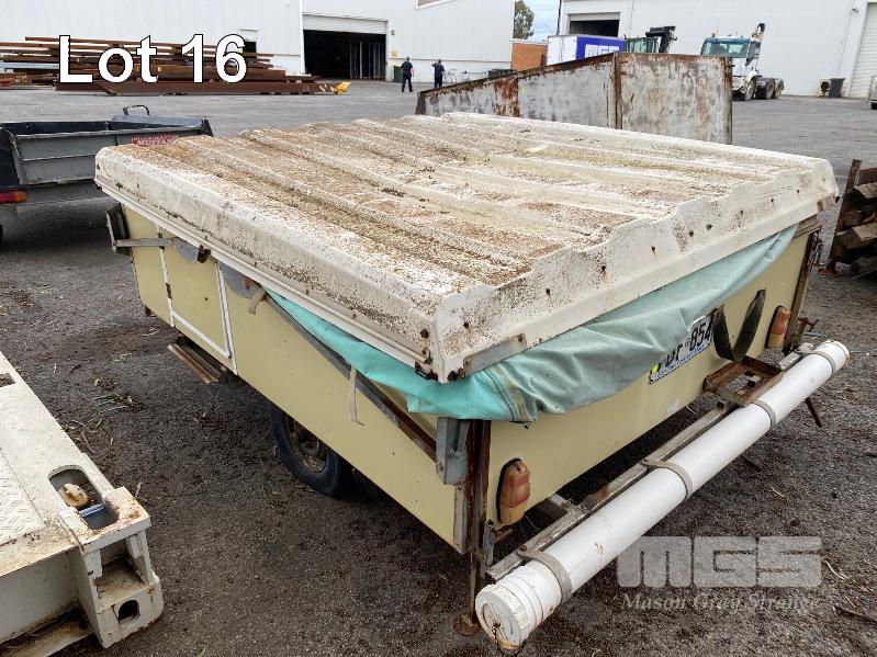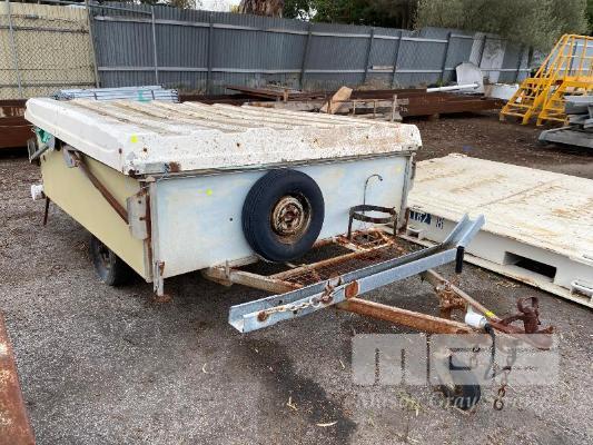 1984 SINGLE AXLE CAMPER TRAILER, TOPAGEE REG: YDF 854 (SA) VIN / CHASSIS: T1162 6.5' x 6.2' (2000 x 1900mm) POP TOP, HINGED FLOOR PANELS, BIKE RACK BALL HITCH, JOCKEY WHEEL, SPARE WHEEL WHITE/GREEN (WITH PAPERS)