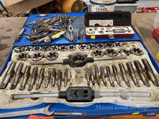 TAP & DIE SET & LARGE QUANTITY ASSORTED TAPS, ETC IN CARRY CASE