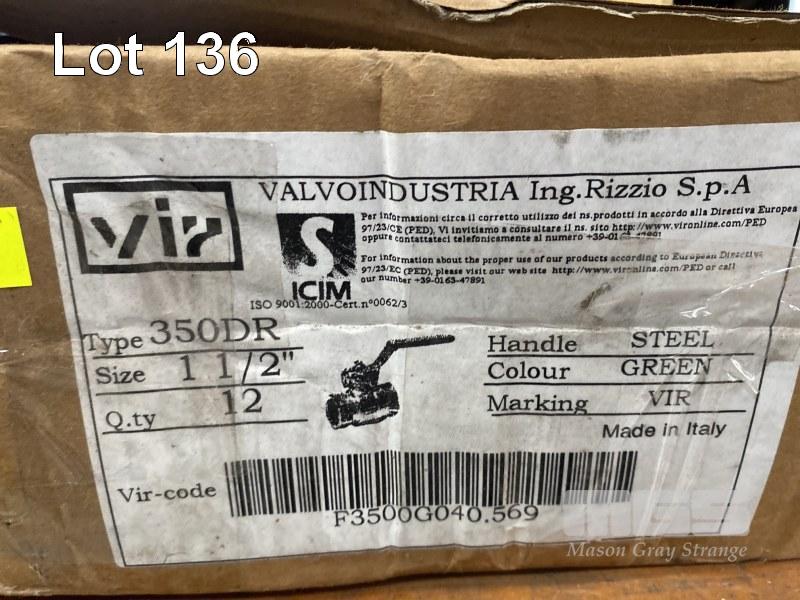 12 x BRASS BALL VALVES, VIP, 350DR, 1 1/2", 1 x BOX