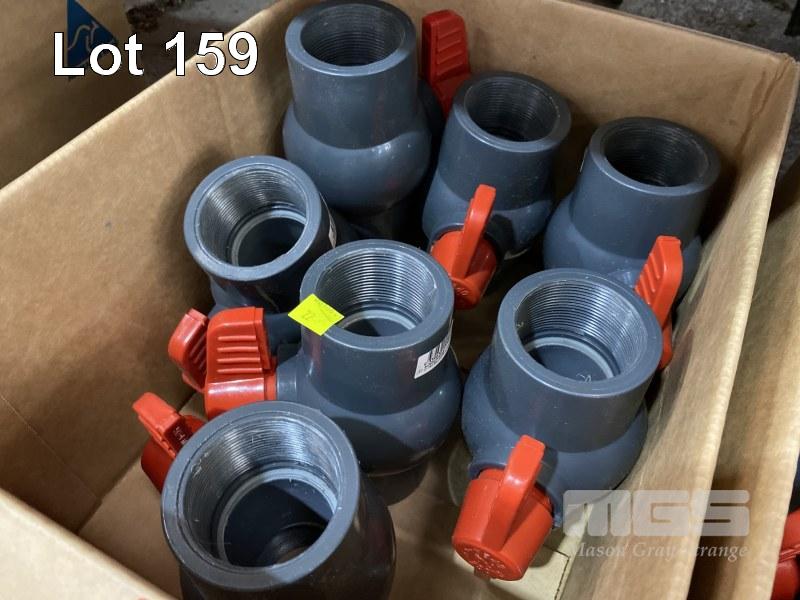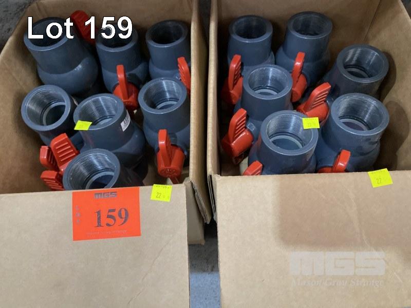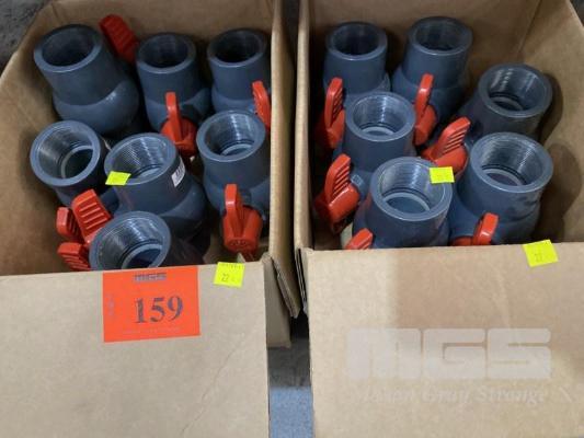 13 x BALL VALVES, PVC, 2", 2 x BOXES
