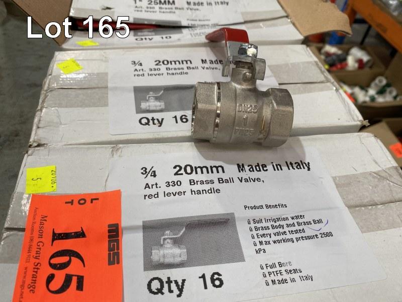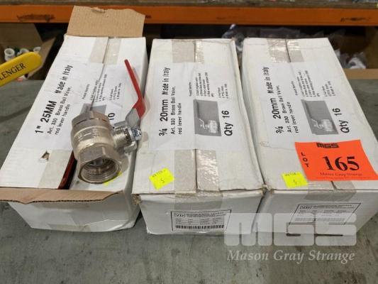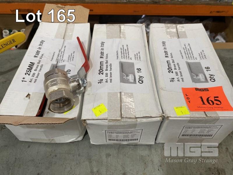 32 x BRASS NICKEL PLATED BALL VALVES, 3/4" (20mm) & 10 x 1" (25mm) 3 x BOXES