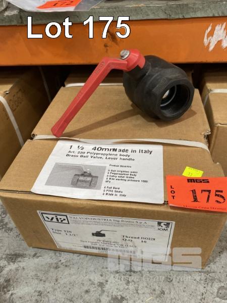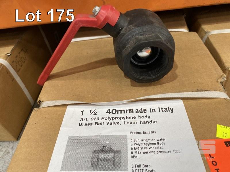 10 x BALL VALVES, POLY PROPBODY, BRASS BALL, 40mm, (1 1/2"), 1 x BOX
