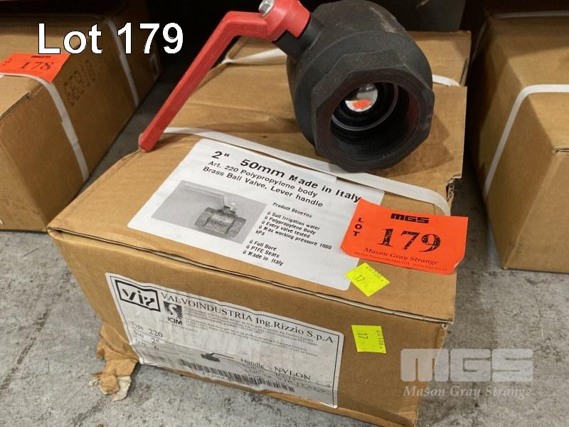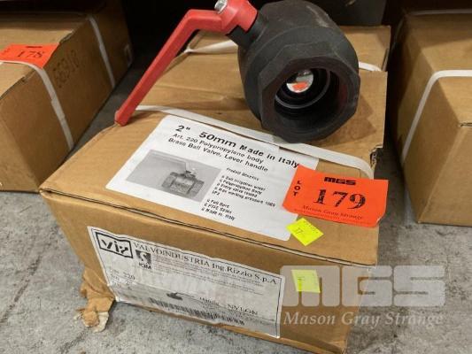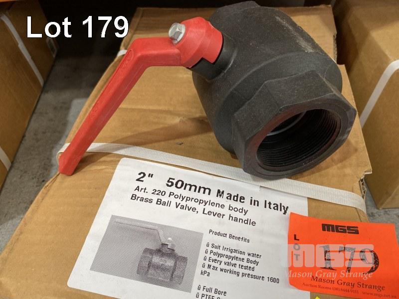 6 x BALL VALVES, POLY PROPBODY, BRASS BALL, 50mm, (2"), 1 x BOX