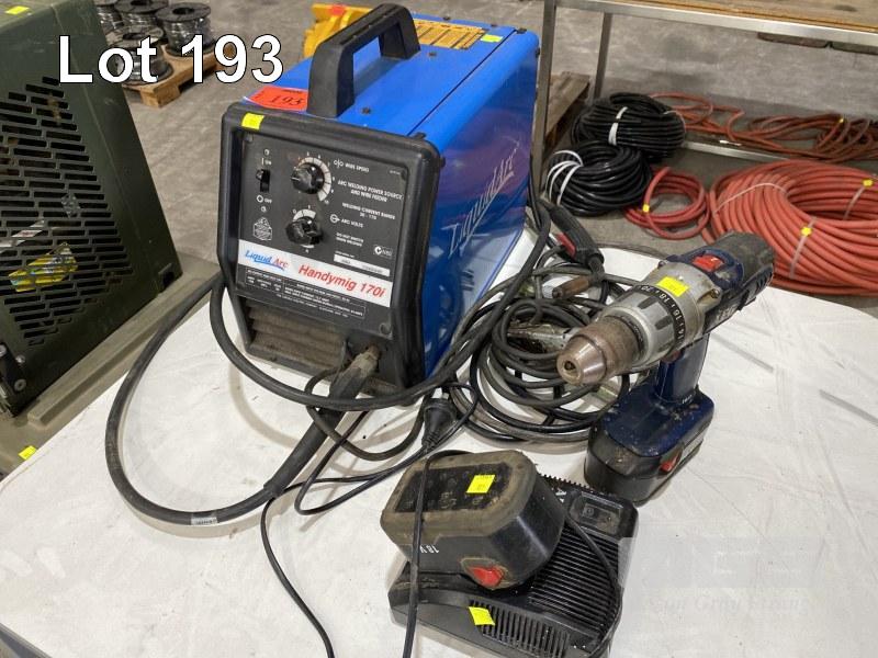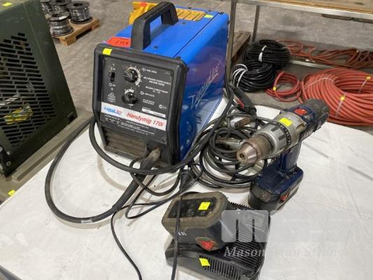 MIG WELDER, LIQUID ARC HANDYMIG 170I, 240V & CORDLESS DRILL, AEG, BATTERY & CHARGER