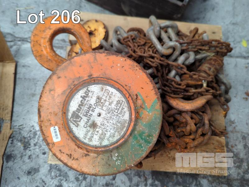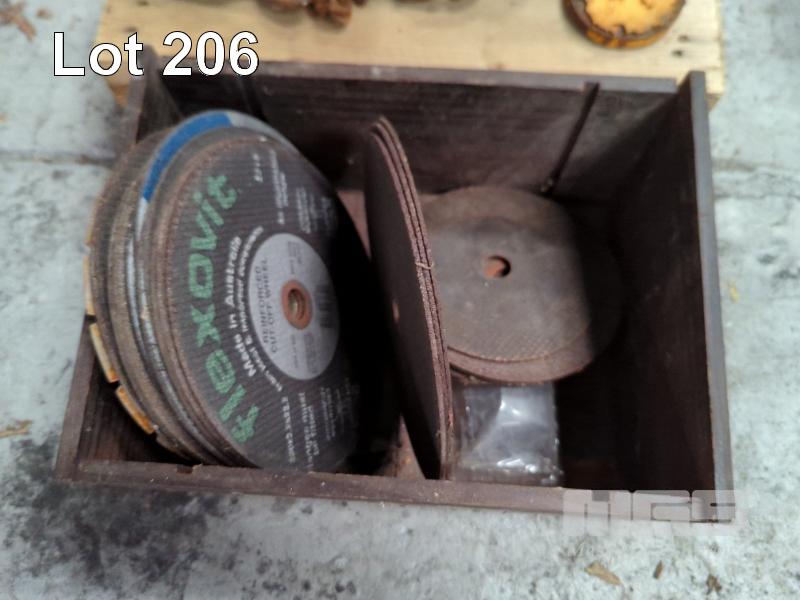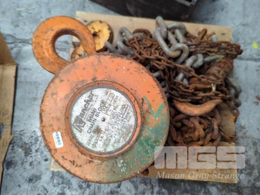 ANCHOR "MINI" 2T CHAIN BLOCK & TACKLE AND BOX OF CUT-OFF WHEELS.