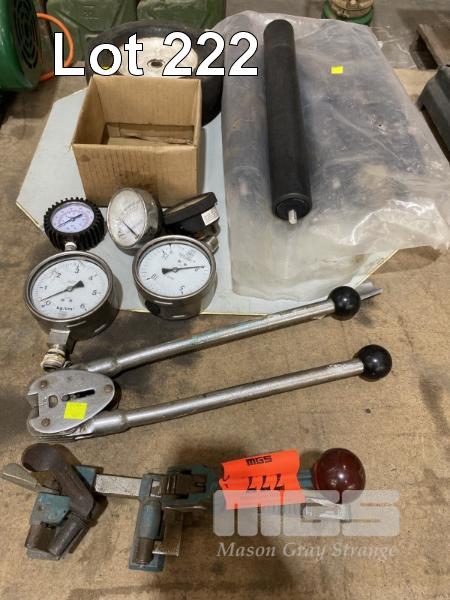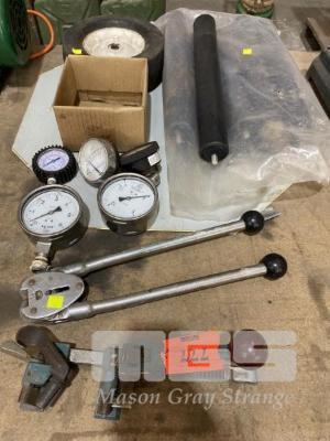 STRAP TENSIONING TOOL & CRIMPER, PRESSURE GAUGES, ROLLERS, SIGN, ETC
