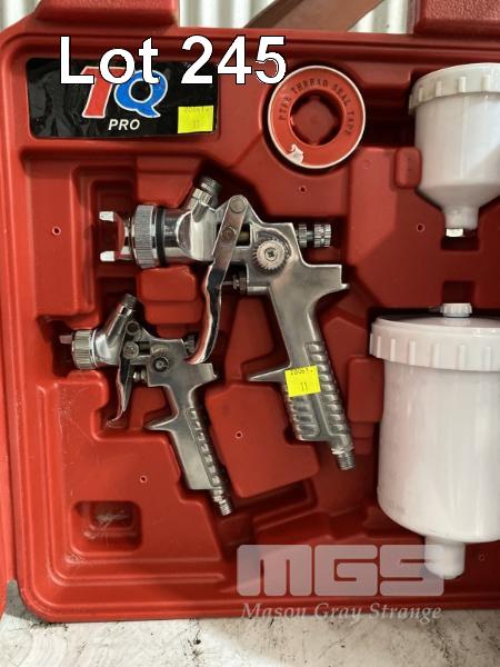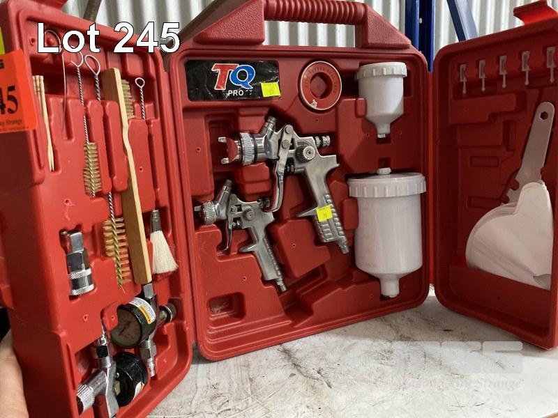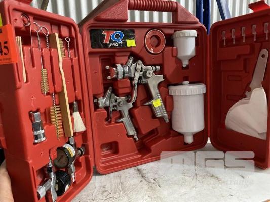 TQ PRO SPRAY PAINT GUN SET, 2 x GUNS, REGS, POTS, ETC IN FOLDING CARRY CASE
