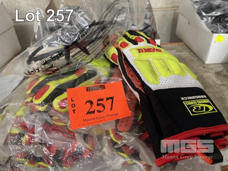 24 x PAIRS (2 x BOXES) SAFETY GLASSES, UGLY FISH & 10 x PAIRS RIGGERS GLOVES, ROUGH NECK, SMALL