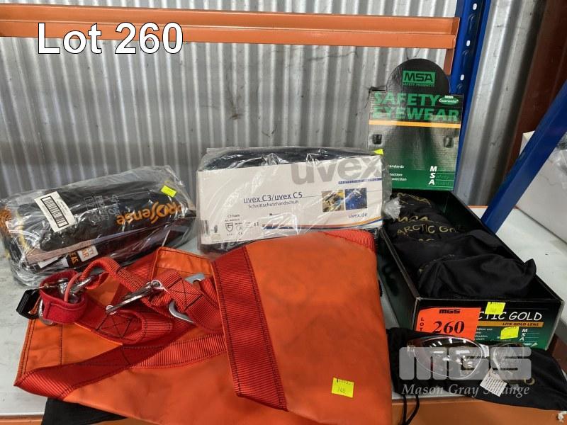 12 x PAIRS MSA SAFETY EYE WARE ARCTIC GOLD GLASSES, 10 x PAIRS UVEX C3 FOAM PROTECTIVE GLOVES, 12 x PAIRS PRO SAFETY GEAR, STINGA PRO SENSE GLOVES & VIKING DESCENT SAFETY SEAT, HONOR MOD: ABTRI
