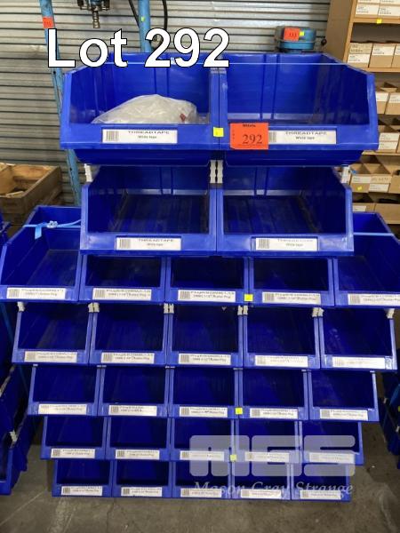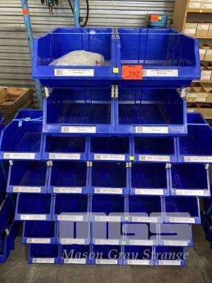 PARAMOUNT, SHUTTER, STACKABLE STORAGE BINS, BLUE PLASTIC, WITH EXTENSION BARS,