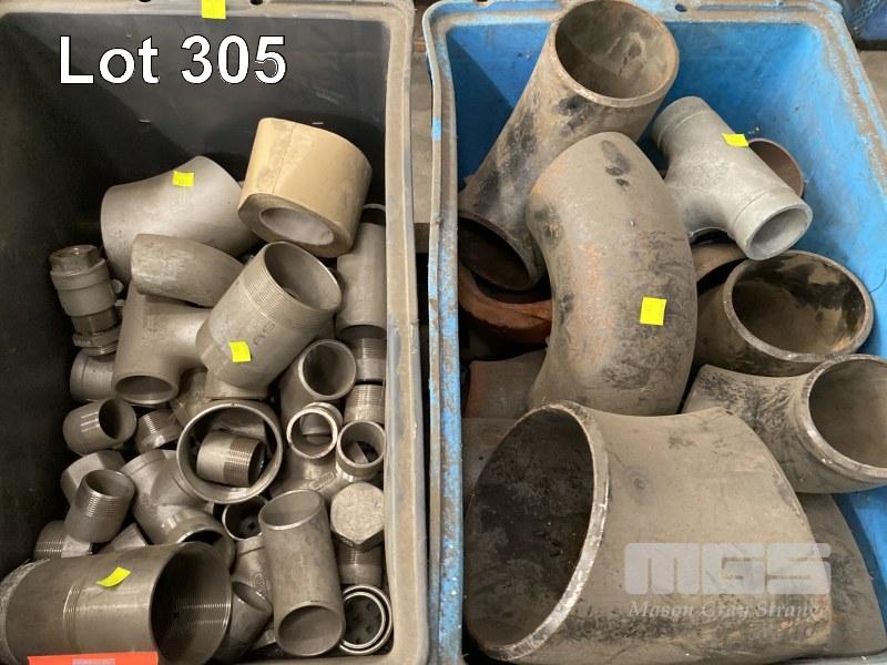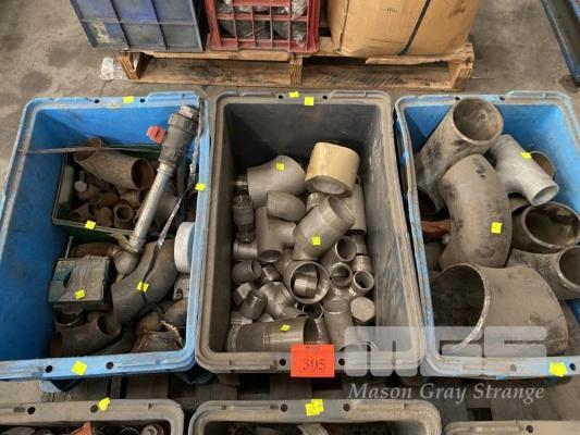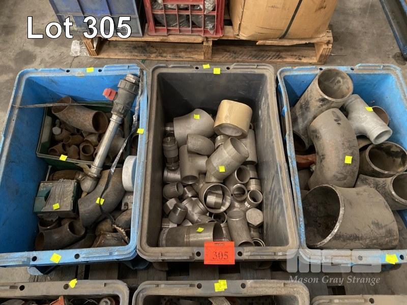 THREADED & WELDED PIPE FITTINGS INC STAINLESS STEEL & BLACK STEEL, BENDS, TEE JOINTS, ASSORTED SIZES, 165 TO 45mm DIA