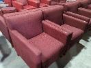 4 X UPHOLSTERED ARMCHAIRS - TEXTURED COARSE FABRIC, MIXED BRICK RED WEAVE, STITCHED TRACK ARMS.