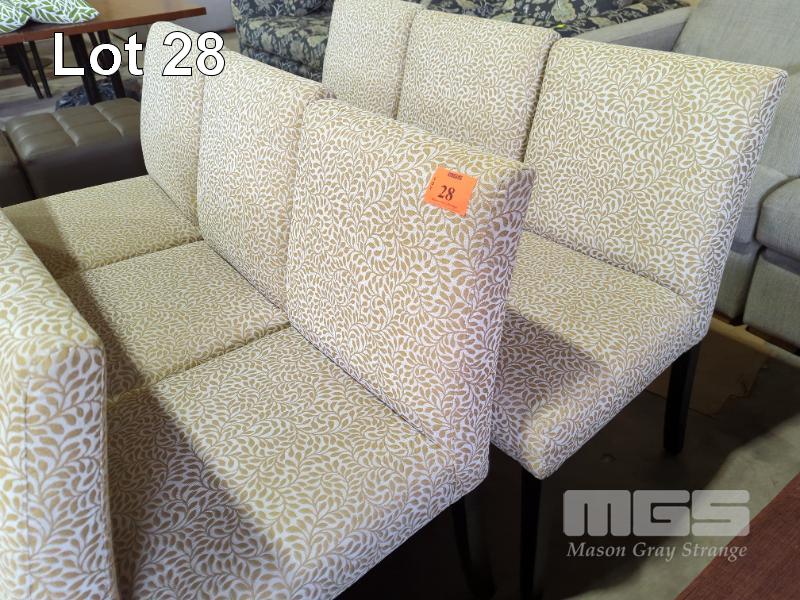 6 X UPHOLSTERED BOUDOIR/DINING CHAIRS - SCROLLING VINE PATTERN.