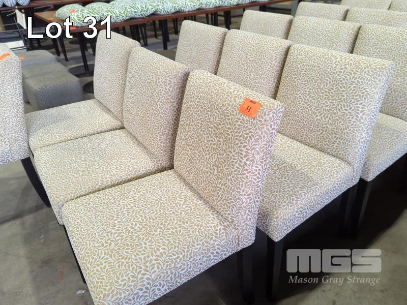 6 X UPHOLSTERED BOUDOIR/DINING CHAIRS - SCROLLING VINE PATTERN.