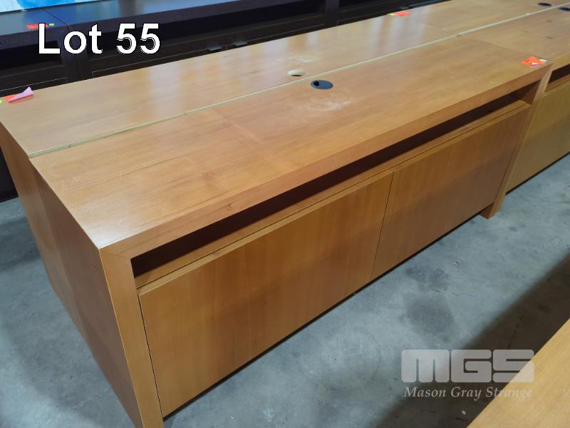TWO-DOOR ENTERTAINMENT UNIT IN WOODGRAIN TIMBER LAMINATE - COLOUR "RED OAK". 170 X 38 X 70.5 CM (W D H).