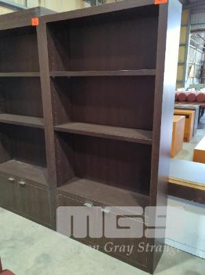 TWO-DOOR, THREE-SHELF WALL UNIT IN WOODGRAIN TIMBER LAMINATE - STAINLESS STEEL LOOK DOOR HANDLES, COLOUR "BLACK ASH". 100 X 30 X 193 CM (W D H).