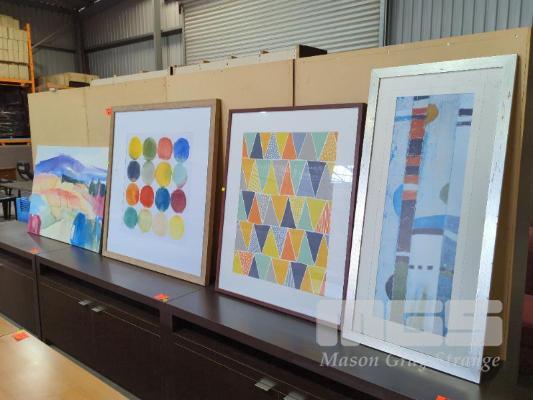 4 X PIECES OF WALL ART - ABSTRACT COLOURED PRINTS.