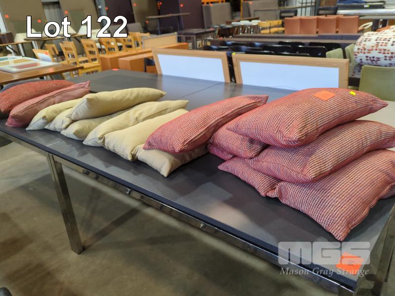 18 X ASSORTED RECTANGULAR THROW CUSHIONS - TEXTURED FABRICS, VARIOUS PATTERNS & SIZES (APPROX 55 X 25 CM).