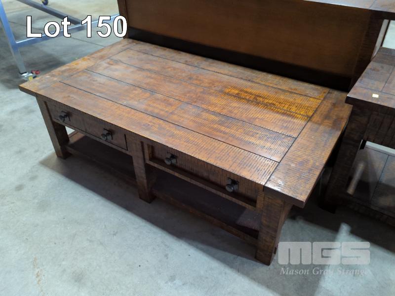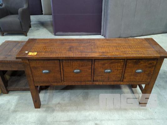 3 X PIECES REPRODUCTION WOODEN FURNITURE. CONSOLE TABLE, SIDE TABLE & COFFEE TABLE - "RUSTIC DISTRESSED" STYLE.