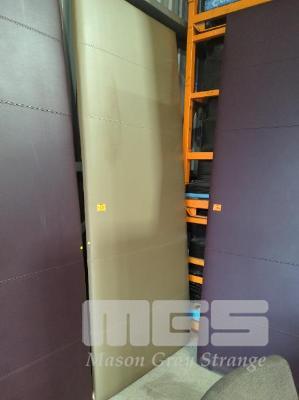 ABSOLUTELY ENORMOUS BED HEAD - FAUX LEATHER - COLOUR DARK TAN GREY, DOUBLE-STITCHED PANEL HIGHLIGHTS. 300 X 125 X 8 CM APPROX. (W H D). SUIT SUPER CAESAR BED.