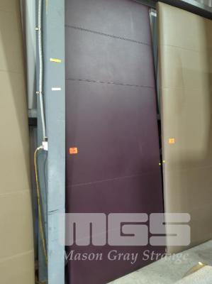 ABSOLUTELY ENORMOUS BED HEAD - FAUX LEATHER, COLOUR REDDISH PURPLE, DOUBLE-STITCHED PANEL HIGHLIGHTS. 300 X 125 X 8 CM APPROX. (W H D). SUIT SUPER CAESAR BED.