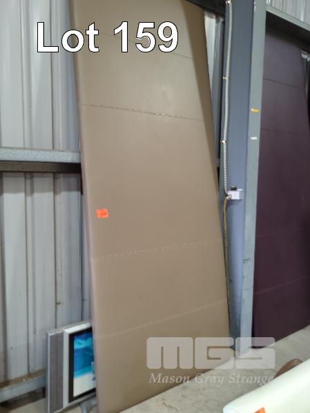 ABSOLUTELY ENORMOUS BED HEAD - FAUX LEATHER - COLOUR DARK TAN GREY, DOUBLE-STITCHED PANEL HIGHLIGHTS. 300 X 125 X 8 CM APPROX. (W H D). SUIT SUPER CAESAR BED.