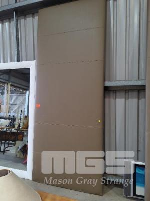 ABSOLUTELY ENORMOUS BED HEAD - FAUX LEATHER - COLOUR DARK TAN GREY, DOUBLE-STITCHED PANEL HIGHLIGHTS. 300 X 125 X 8 CM APPROX. (W H D). SUIT SUPER CAESAR BED.