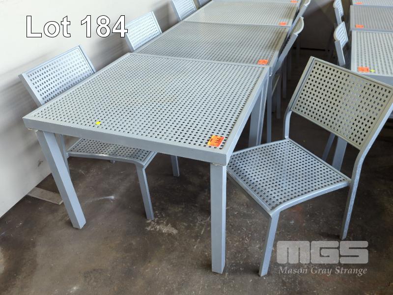OUTDOOR TABLE - COATED ALUMINIUM, MESH CONSTRUCTION, LIGHT GREY COLOUR. 91 X 91 X 70 CM (W D H) 2 X MATCHING CHAIRS.