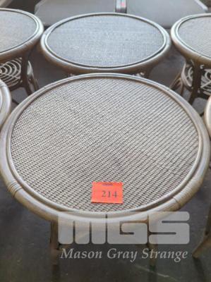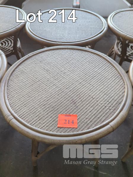 2 X ROUND SYNTHETIC CANE SIDE TABLES - SYNTHETIC WICKER LOOK TOPS. 60 X 56 CM (DIA. H)