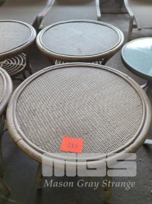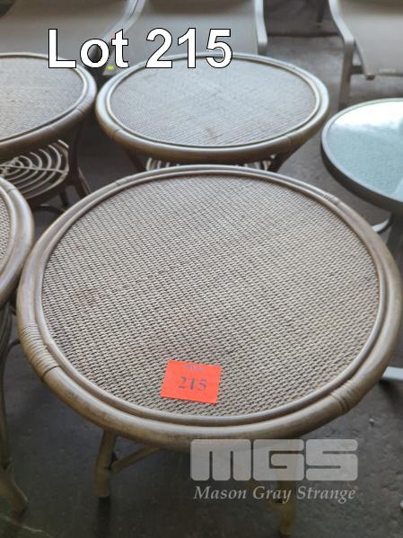 2 X ROUND SYNTHETIC CANE SIDE TABLES - SYNTHETIC WICKER LOOK TOPS. 60 X 56 CM (DIA. H)