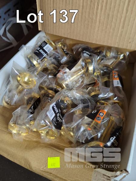 DOOR STOPS, TRIO REVIVE, BRASS & BRUSHED STAINLESS STEEL FINISH, 2 x BOXES