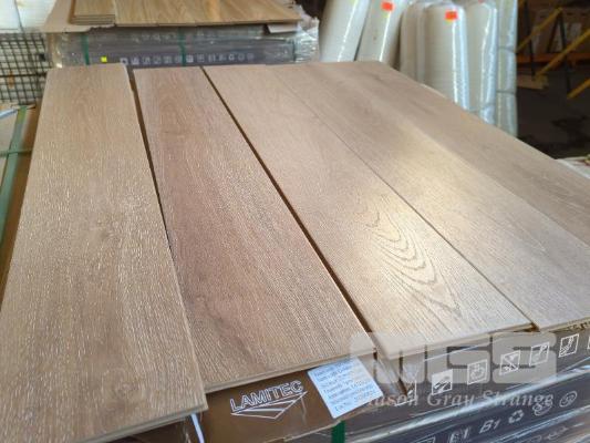 LAMITEC TIMBER LAMINATE FLOORING COLOUR: GOLDEN OAK, TEXTURE SURFACE PRESSED V-GROOVE 1215 x 197 x 12mm 7 PIECES/CARTON AREA/CARTON: 1.675sqm PATTERN CODE: SN17302-24 10 x CARTONS