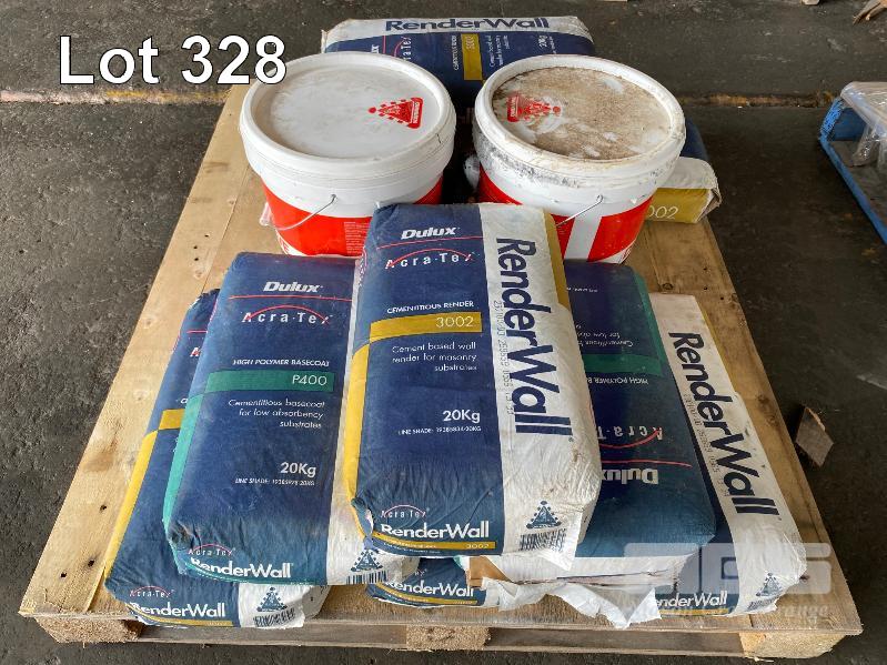 WALL RENDER, DULUX, ACRA-TEX, 3002 & P400 POLYMER BASE COAT 9 x 20kg BAGS WITH 2 x BUCKETS MULTITEX DECORATIVE FINISH 1 x PALLET
